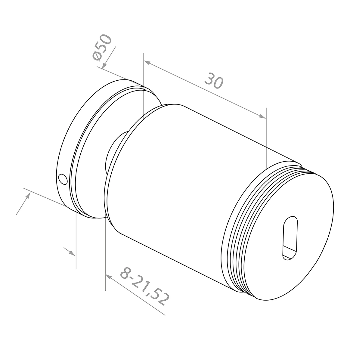 Montáž držiaka je rýchla a pohodlná — prvok skrutkovaný so závitom M10 vyžaduje iba prípravu montážneho otvoru s priemerom Ø18 mm v plochom povrchu. Široký rozsah prijateľných hrúbok skla (8–21,52 mm) zahŕňa ako jednotlivé kalené tabule, tak aj viacvrstvové laminované sklo (VSG), čo zabezpečuje univerzálnosť v rôznych projektoch. V komplekte sa nachádzajú gumové chrániče na sklo, ktoré chránia tabuľu pred poškodením a eliminujú potrebu samostatného objednávania tesnení.