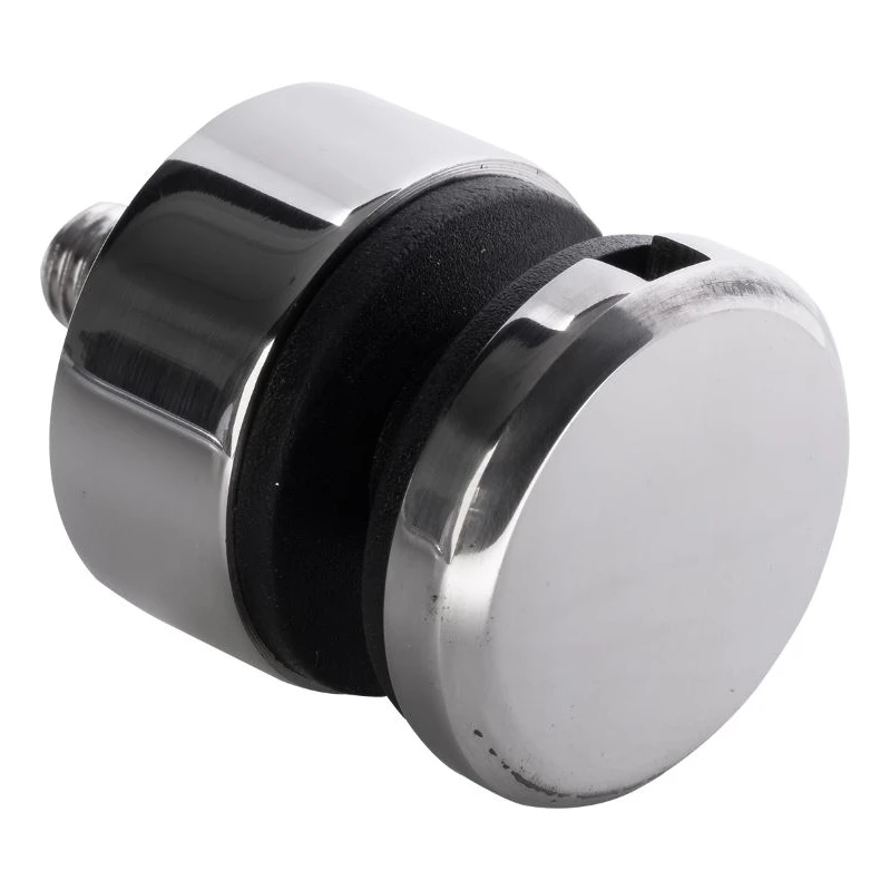 Úchyt stabilne podopiera sklá hrúbky od 6 do 12 mm vďaka priloženým dorazovým gumám s plným rozsahom regulácie. Závitový čap M8×40 s imbusovým otvorom umožňuje rýchlu a spoľahlivú montáž k nosnej konštrukcii. Kompaktný priemer 30 mm umožňuje diskrétne upevnenie, ktoré nedominuje nad sklenou tabuľou.