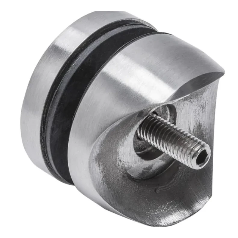 Úchyt sa montuje metódou vkrúcania pomocou závitového čapu M10 s dĺžkou 50 mm. Sedlové výrezy v základni zabezpečujú presné prispôsobenie k rúre s priemerom 42,4 mm, čo zaručuje stabilné a estetické spojenie. Gumové tesnenia po oboch stranách sklenenej tabule chránia materiál pred poškriabaním a účinne tlmia vibrácie, zároveň kompenzujú rozdiely hrúbky skiel v rozsahu 8–17,52 mm.