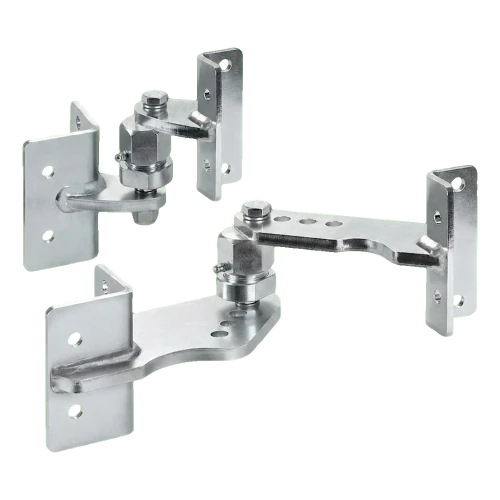 Sada pántov Comunello RS-100F je určená na montáž krídlových brán na šikmých terénych — príjazdových cestách, vstupoch na pozemky situované na svahoch, a tiež všade tam, kde sa úroveň terénu pri stĺpiku líši od úrovne pri konci krídla. Excentrický mechanizmus umožňuje presnú reguláciu uhla naklonenia krídla priamo počas montáže, čo výrazne urýchľuje inštalačné práce a eliminuje nutnosť používania podložkových dištančníkov.
