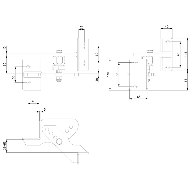 - Rozostup otvorov dolnej dosky vo zvislom smere: 85 mm (pravý pohľad) / 55 mm (ľavý pohľad)