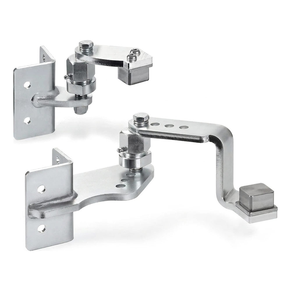Sada je určená na montáž zváraním – podpery sa umiestňuju priamo na stĺpik a kĺb na rameno krídla brány. Excentrické nastavenie umožňuje korekciu nastavenia krídla po montáži, čo výrazne skracuje čas inštalácie a eliminuje potrebu demontáže pri drobných úpravách. Maznice zabudované v kĺboch zabezpečujú bezúdržbovú prevádzku – postačuje pravidelné mazanie bez potreby snímania závesu.