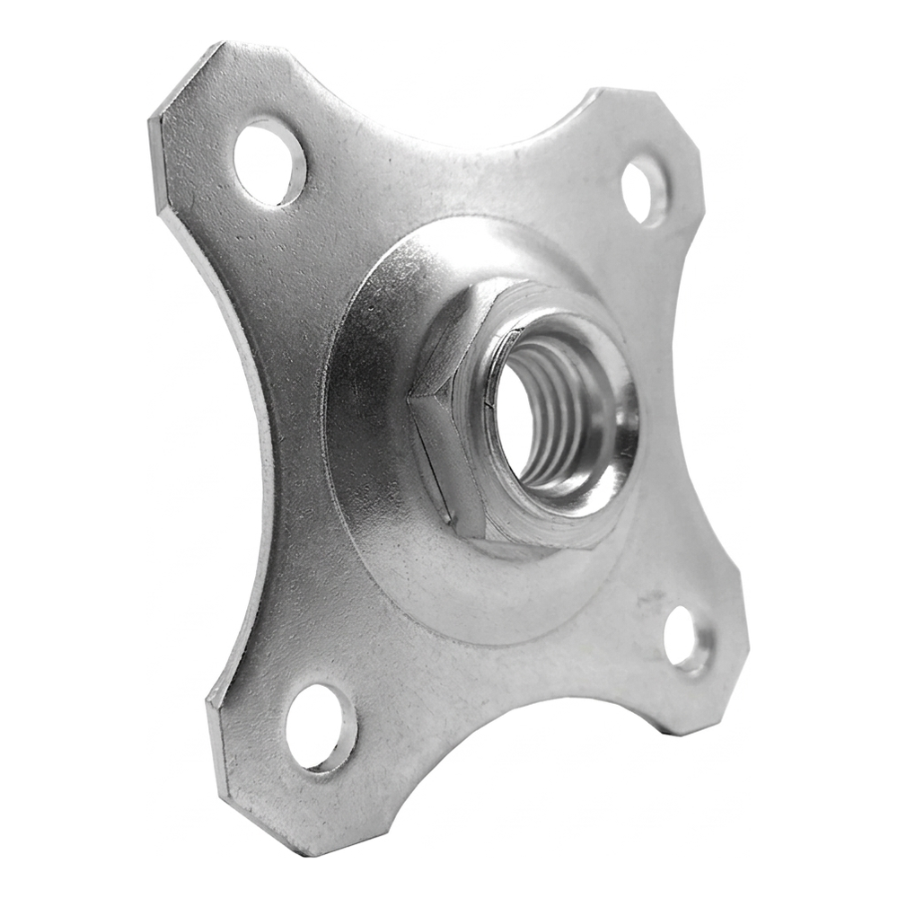Dekoratívny štítok 80 × 80 × 3 mm je estetický montážny prvok určený na používanie s nastaviteľnými závismi so skrutkou M16. Vďaka štvorom montážnym otvorom zabezpečuje trvanlivé a stabilné priskrutkovanie k stĺpiku alebo rámu brány, a zinkové pokrytie zaručuje dlhoročnú odolnosť voči korózii a poveternostným vplyvom.