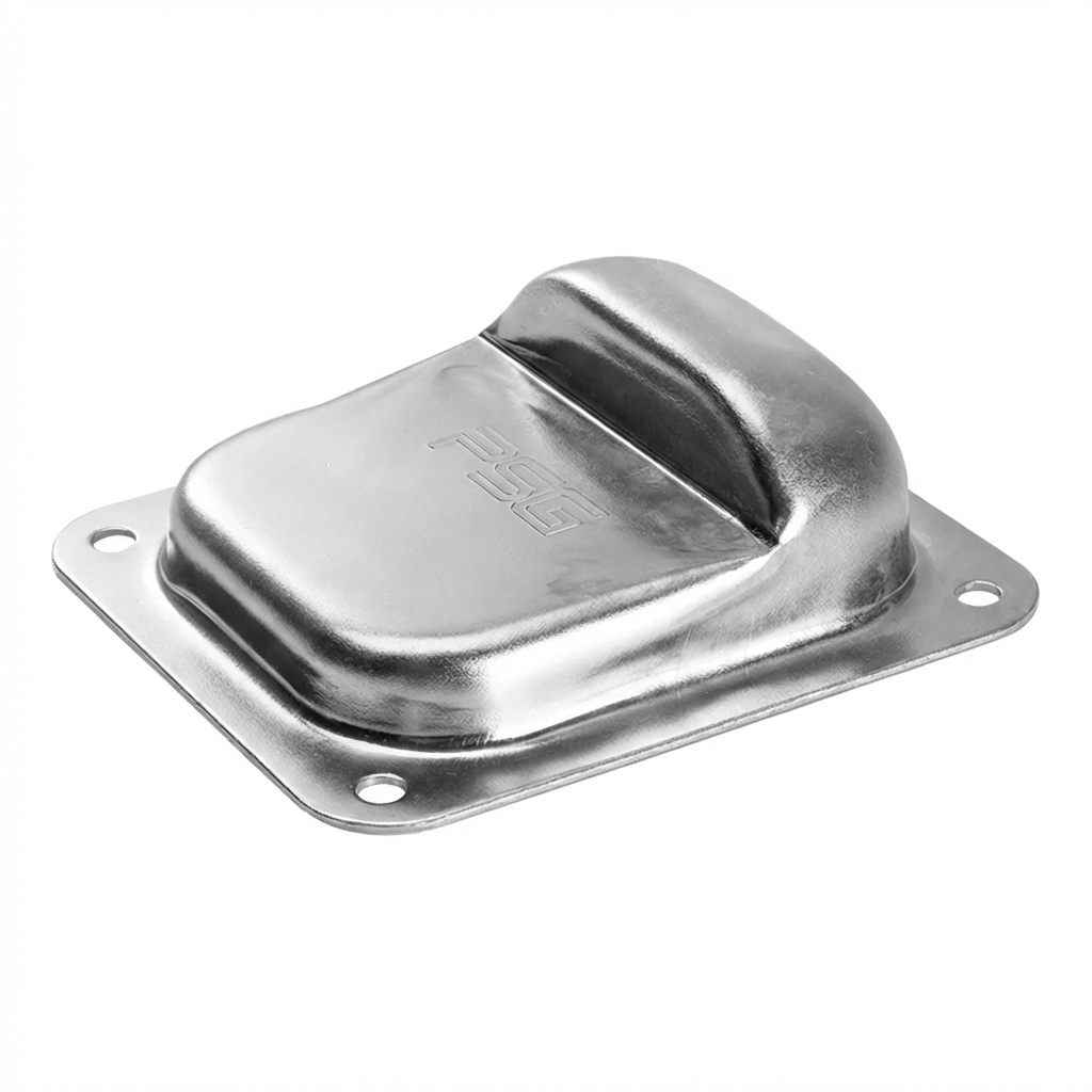 Oceľová zarážka (obmedzovač) pre krídlové brány určená na montáž v mieste stretnutia krídel brány. Solídna, lisovaná konštrukcia so štyrmi montážnymi otvormi umožňuje rýchle a spoľahlivé priskrutkovanie k podkladu — bez zvárania a bez dodatočného príslušenstva.