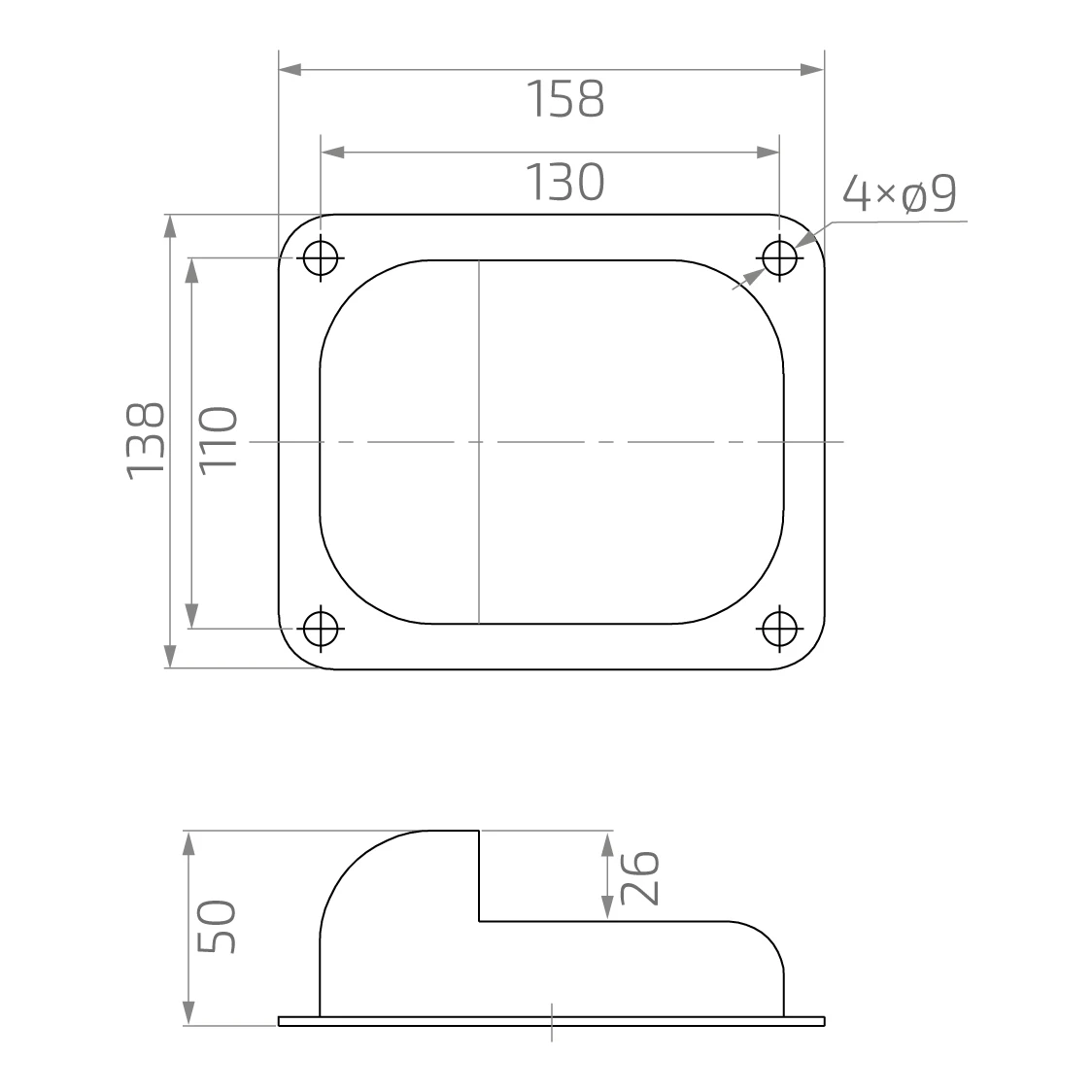 - Priemer montážnych otvorov: Ø 9 mm (4 ks)