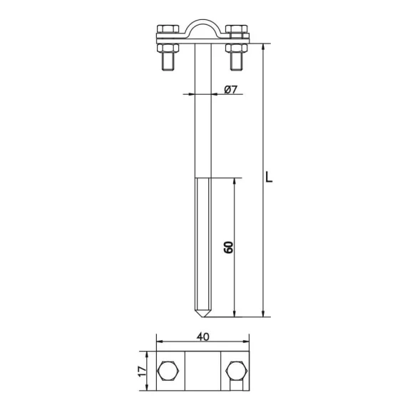 Držiak na drôt skrutkový h=12cm pozinkovaný galvanicky