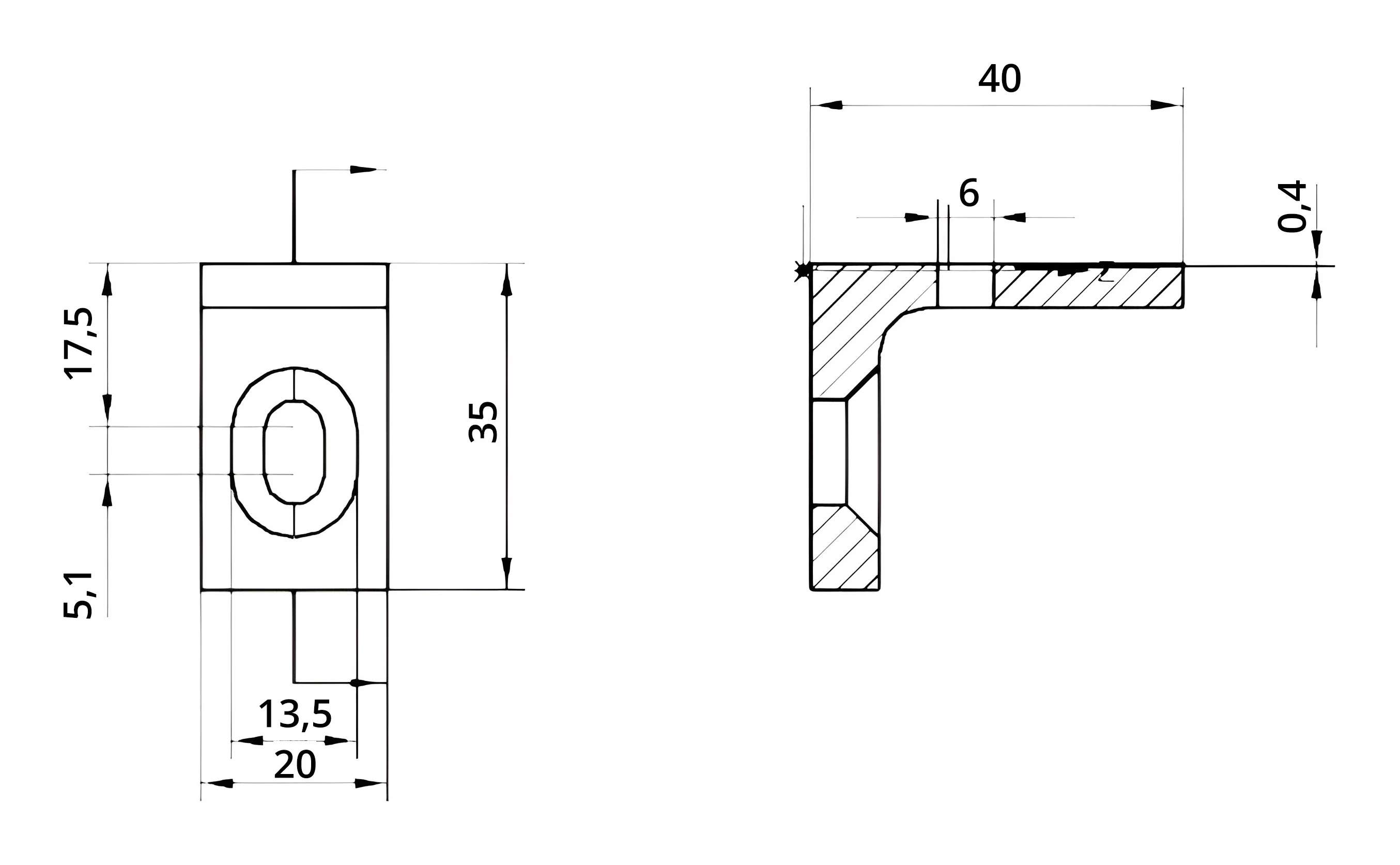 - Hrúbka vodorovného ramena s podrezom: 0,4 mm prehĺbenie