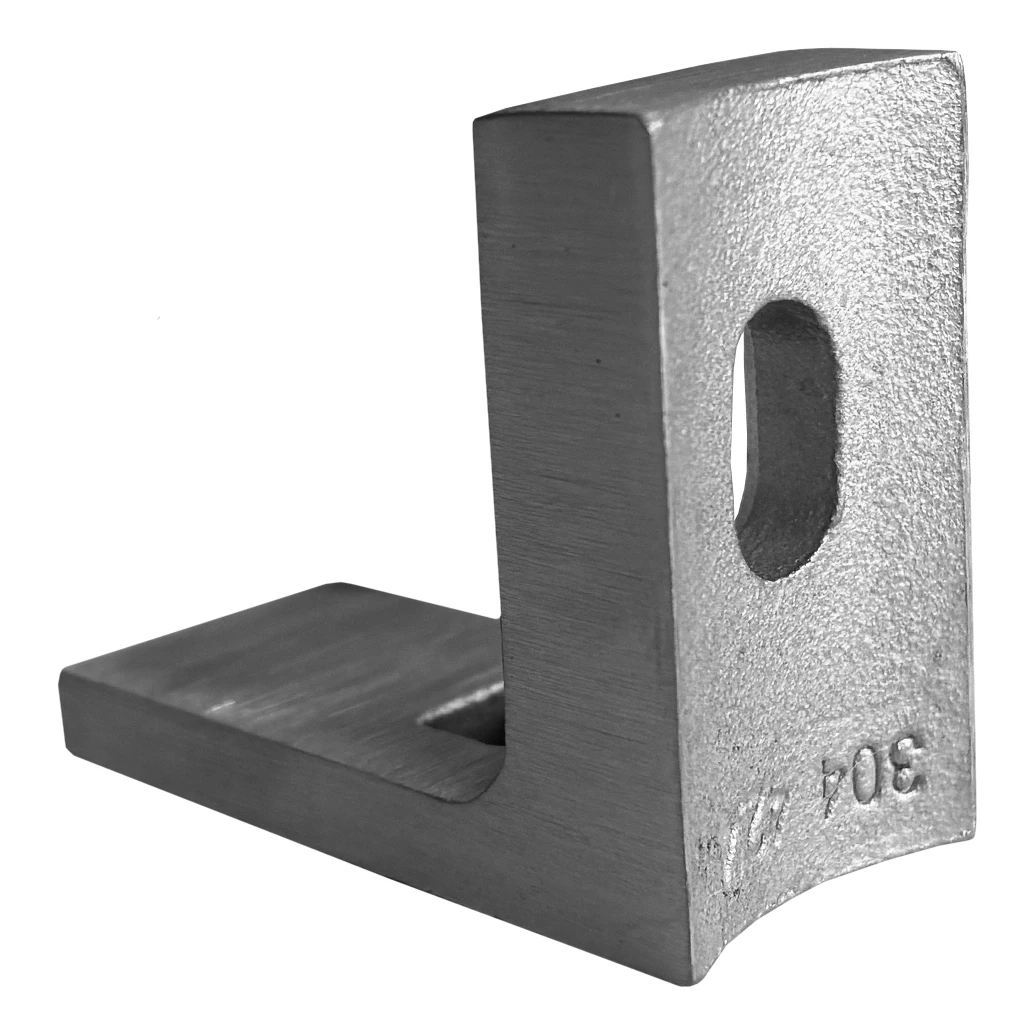 Profil držiaka v tvare písmena L umožňuje stabilné osadenie sklenenej tabule, a gumová podložka (EPDM) na hornom ramene chráni povrch skla pred poškriabaním a zabezpečuje rovnomerné rozloženie tlaku. Montáž sa vykonáva pomocou lúčkovitého otvoru vo vertikálnej časti, čo dáva možnosť regulácie pozície počas inštalácie. Sklo sa dotláča upevňovacou skrutkou so závitom M6 / M8 (skrutka nie je súčasťou sady) zaskrutkovanou cez otvor v hornom ramene.