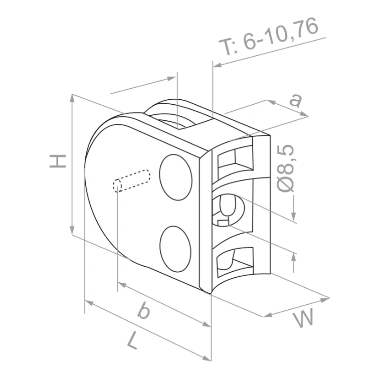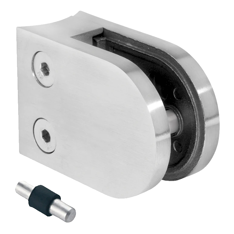 Držiak skla z nehrdzavejúcej ocele AISI 304 v leštenom vyhotovení (lesk/zrkadlo), určený na montáž sklenených tabúľ s hrúbkou od 6 do 10,76 mm na rúry s priemerom 42,4 mm. Kompaktná konštrukcia s priloženým zabezpečovacím pinom zaručuje spoľahlivé a estetické uchytenie sklenených panelov v zábradliach, zimných záhradách a priečkach.