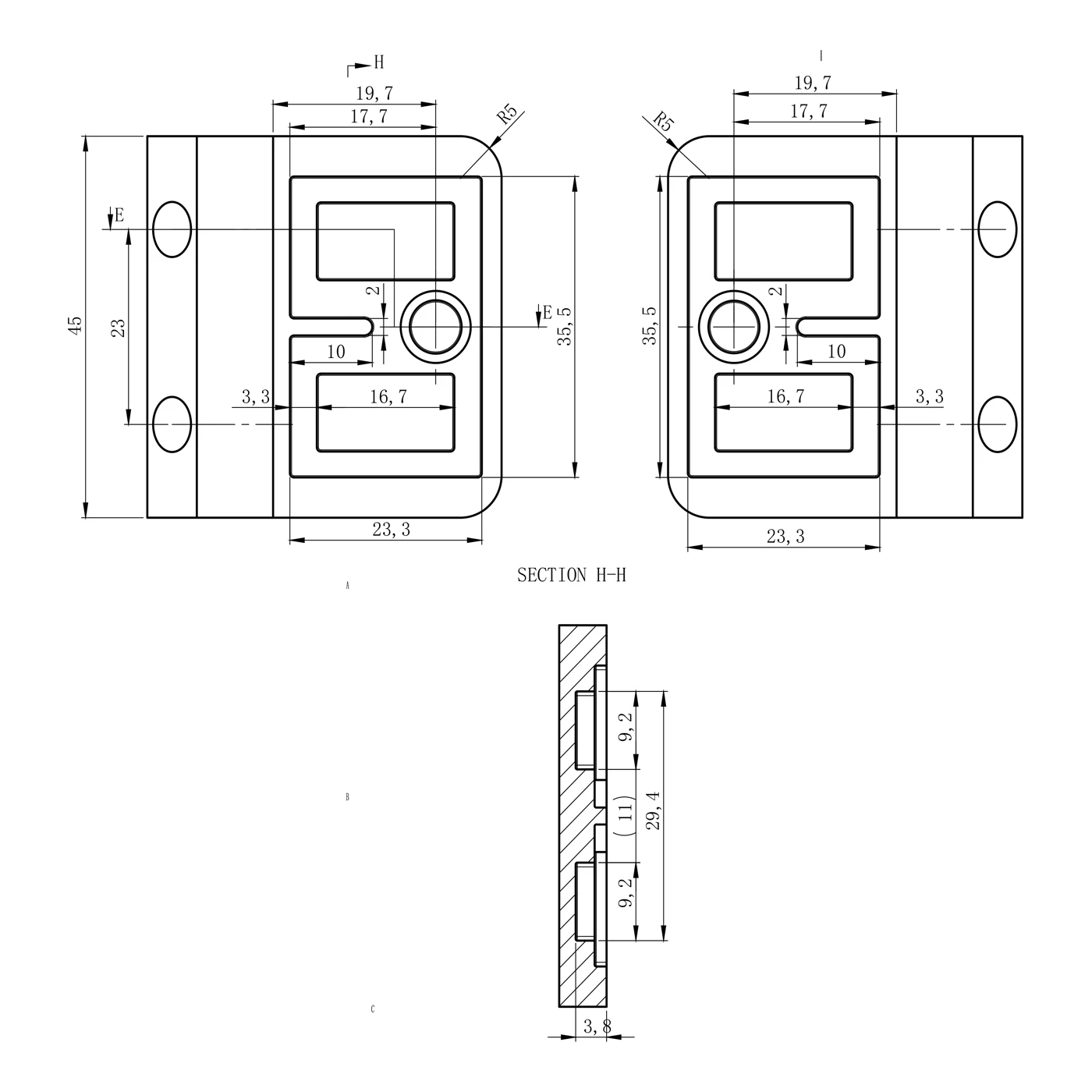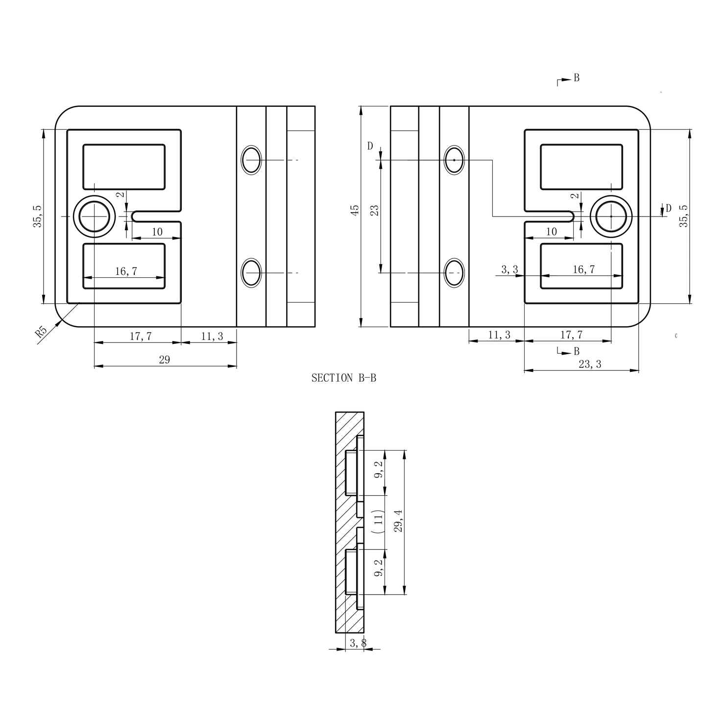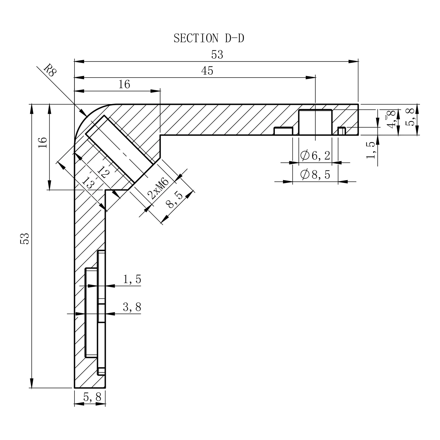 Telo držiaka (rez D-D):
