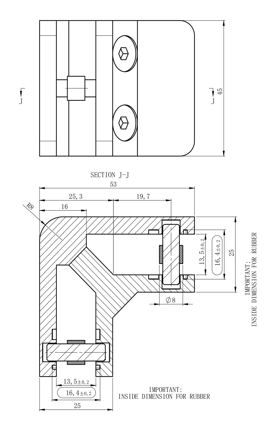 - Šírka vnútornej štrbiny (pre tesnenie): 16,4 ±0,2 mm