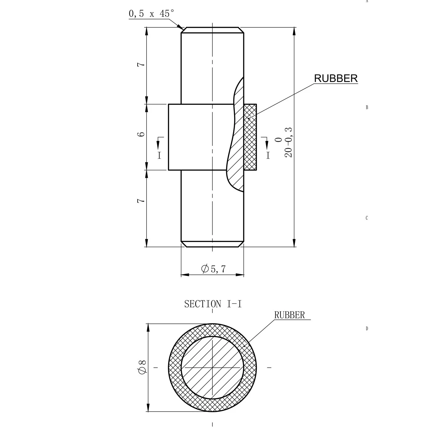 - Vonkajší priemer gumy: ⌀8 mm