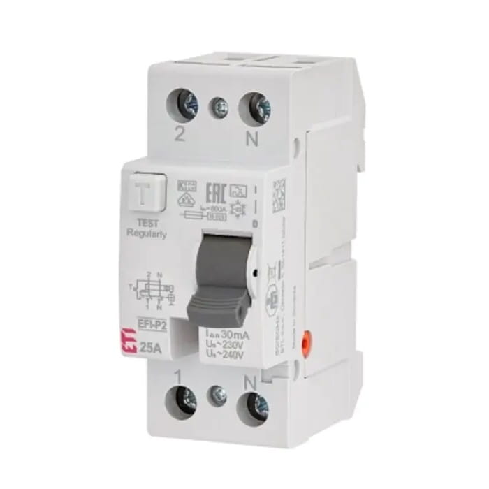 Zvyškový prúdový istič 2P 25A 30mA typu AC EFI6-P2 AC 25/0,03 002061251 od spoločnosti ETI, známy aj ako diferenciálny alebo RCD, je zariadenie, ktoré odpojí obvod, keď zistí nesprávnu úroveň medzi odchádzajúcim a prichádzajúcim prúdom. Jeho hlavnou funkciou je ochrana pred úrazom elektrickým prúdom pri priamom aj nepriamom kontakte.