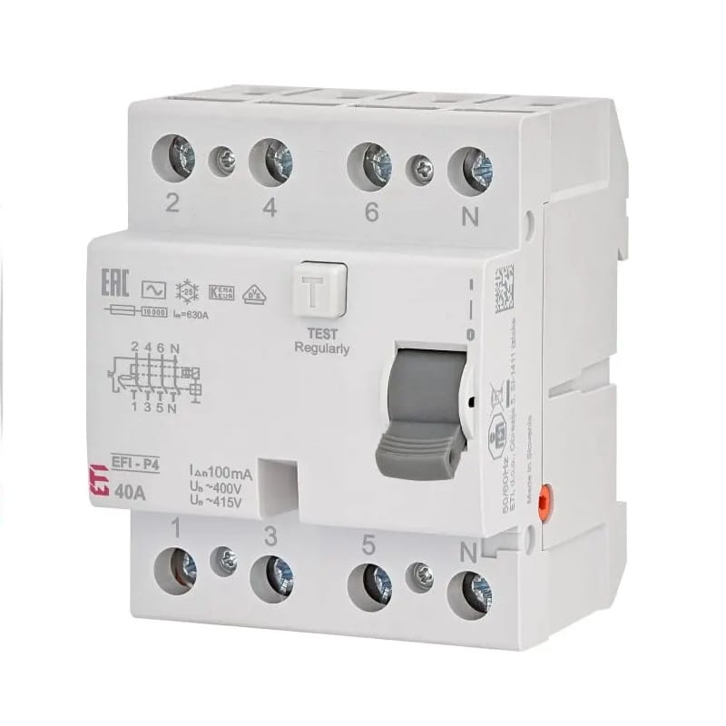 Zvyškový prúdový istič 4P 40A 100mA typu AC EFI-P4 AC 40/0,1 002061622 od spoločnosti ETI chráni elektrický obvod tým, že ho odpojí pri zistení rozdielu prúdu, čo chráni pred poškodením a úrazom elektrickým prúdom. Používa sa pre nepriamy aj priamy kontakt.