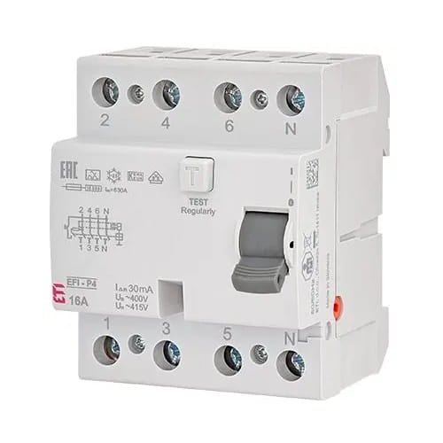 Zvyškový prúdový istič 4P 40A 30mA typ AC EFI6-P4 AC 40/0,03 002061652 od spoločnosti ETI je zariadenie, ktoré chráni elektrický obvod. Diferenciálny istič odpojí obvod pri zistení rozdielu elektrického prúdu - keď sa odchádzajúci prúd nerovná prichádzajúcemu prúdu. Tento prístroj chráni elektrickú sieť a zariadenia v nej pred poškodením a tiež chráni osoby, ktoré obvod používajú, pred úrazom elektrickým prúdom pri priamom a nepriamom kontakte.