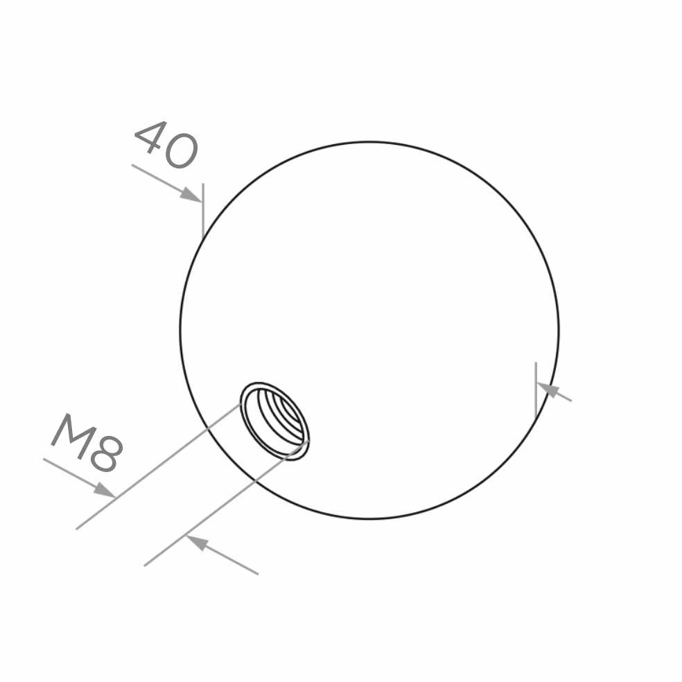 Guľa skrutkovateľná plná na zábradlie fi 40 mm závit M8 – nehrdzavejúca oceľ satén