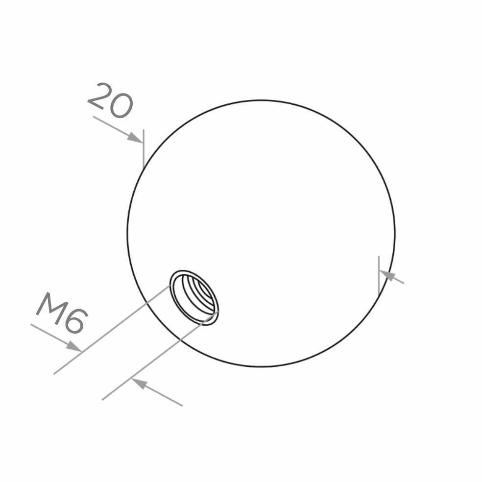 Guľa zábradlová zaskrutkovateľná plná fi 20 mm, závit M6, nehrdzavejúca oceľ satén