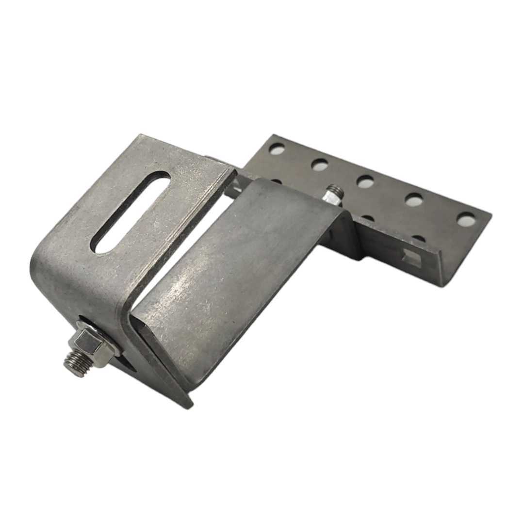 Strešný držiak na upevnenie montážnych lišt fotovoltaických panelov na strechách pokrytých keramickou a betónovou škridlou. Zaručuje správnu stabilitu celej konštrukcie.