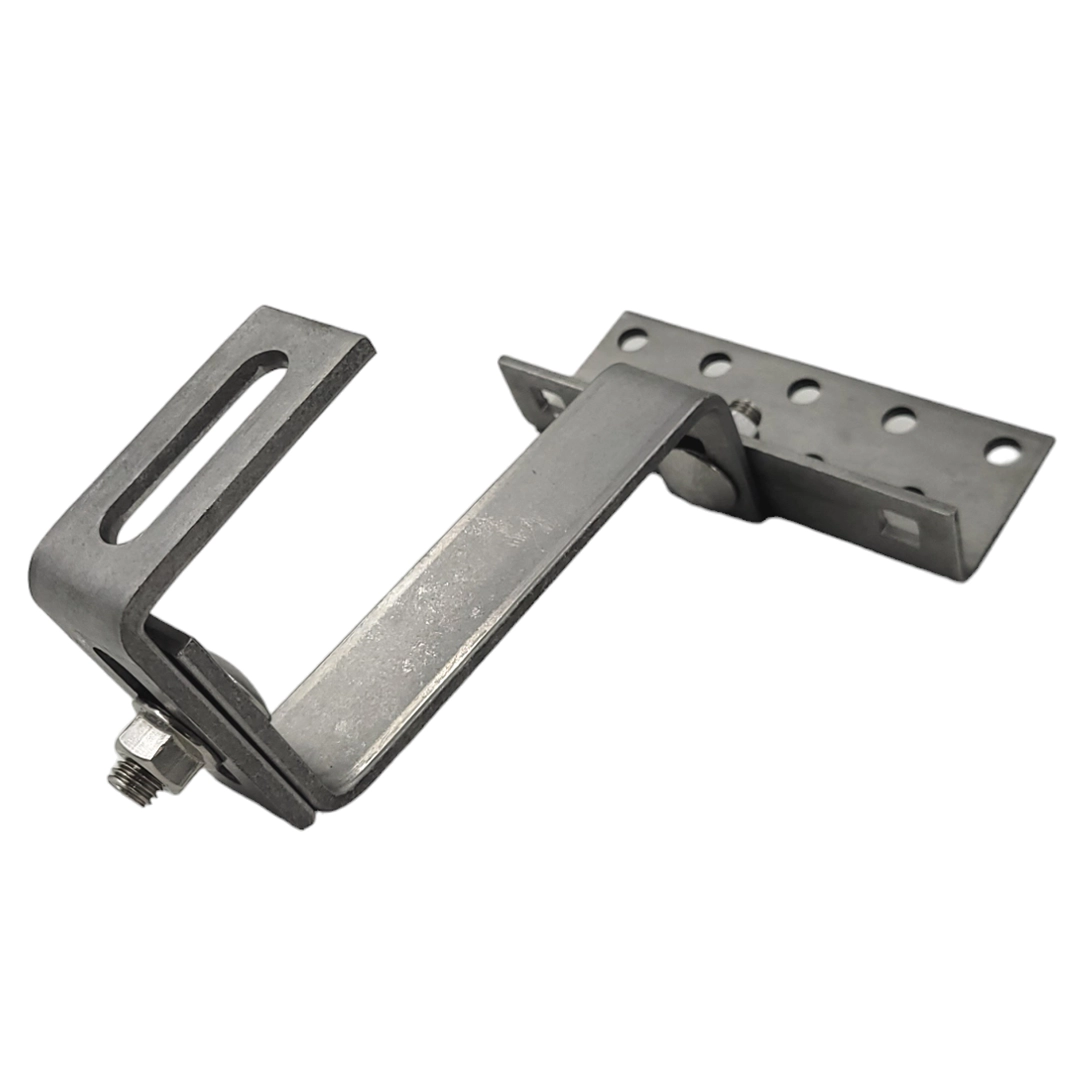 Strešný hák Vario typ 4-5-5 nastaviteľný, nehrdzavejúca oceľ H17/1.4016, s rozmermi 145x30x5/5mm/4mm s otvorom M10 pod profil pre fotovoltaické systémy.