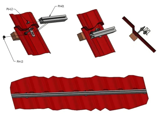 Montážny profil je vhodný na upevnenie fotovoltaických panelov pomocou stredových a koncových svoriek. Svorky sa upevňujú do horného koľajnicového kanála profilu. Spodný koľajnicový kanál umožňuje montáž profilu na adaptéry, strešné háky alebo trojuholníky.
