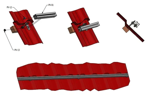 Montážny profil je vhodný na upevnenie fotovoltaických panelov pomocou stredových a koncových svoriek. Svorky sa upevňujú do horného koľajnicového kanála profilu. Spodný koľajnicový kanál umožňuje montáž profilu na adaptéry, strešné háky alebo trojuholníky.