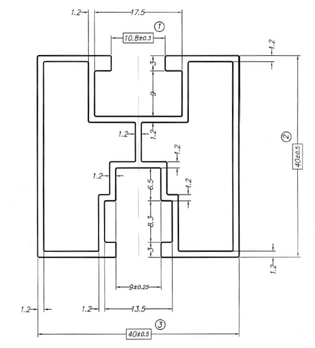 Príkladový Hliníkový profil 10cm 40x40 pre šesťhranné skrutky Eloxovaný