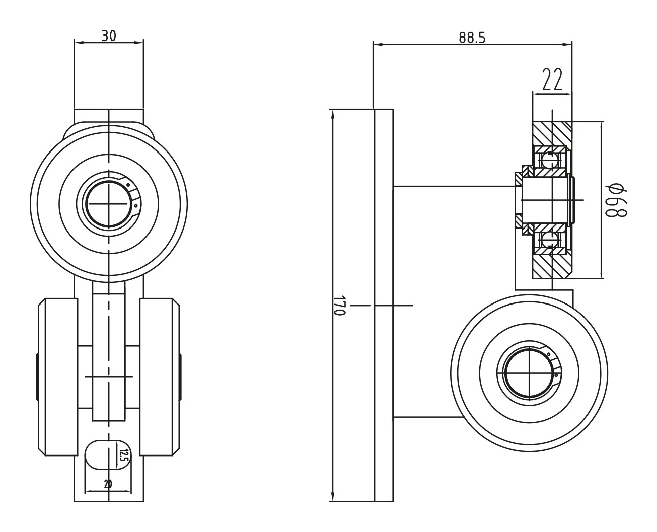Jazdný vozík 80 oceľové kolesá na závesné brány