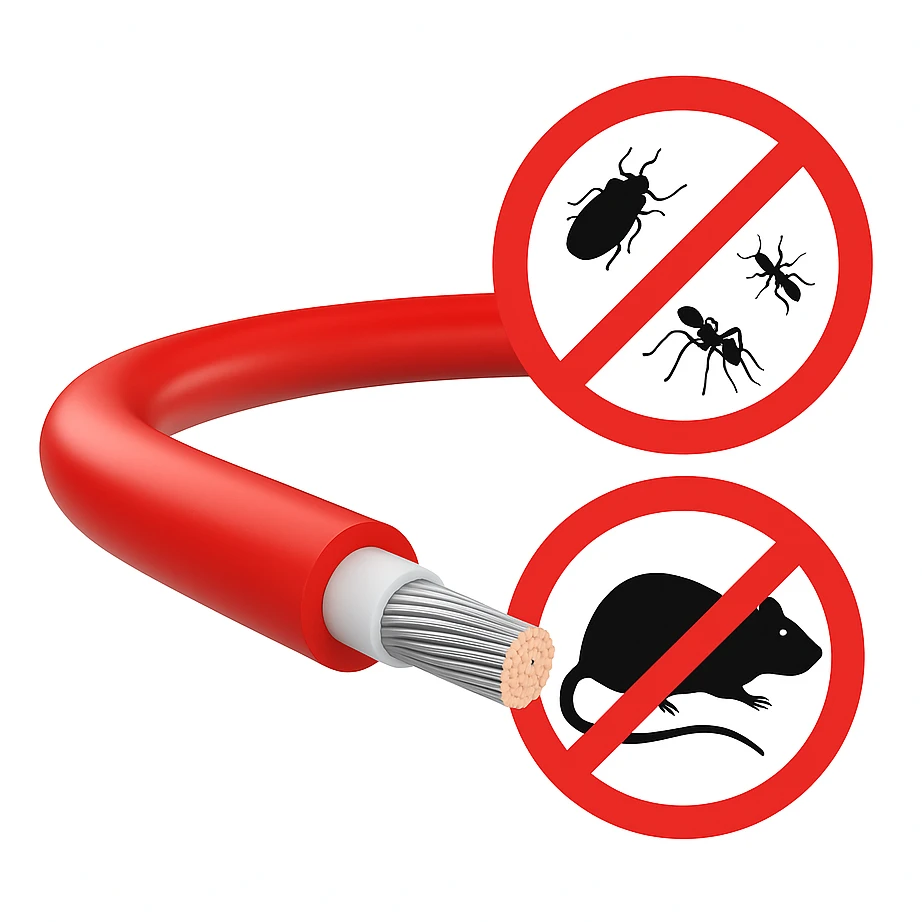 Prečo má ochrana AR význam? Poškodenie káblov hlodavcami je jednou z najčastejších príčin porúch fotovoltaických inštalácií, najmä vo vidieckych oblastiach a v blízkosti hospodárskych budov. Prísada proti hlodavcom vo vonkajšom plášti účinne odpudzuje škodcov, čím eliminuje riziko nákladných prestojov a opráv.
