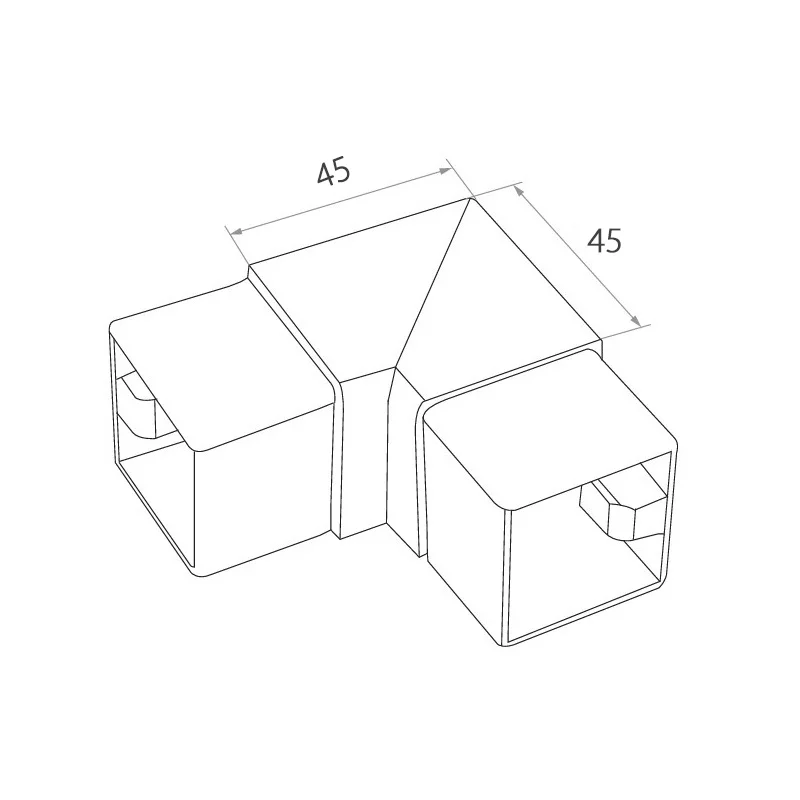 Koleno 90° je precízny rohový spojovací prvok určený pre stavbu sklených zábradlí v systéme štvorcových profilov 40x40 mm. Vyrobené z nerezovej ocele AISI304 so saténovou povrchovou úpravou zabezpečuje estetické a trvanlivé spojenie dvoch profilov pod pravým uhlom. Vďaka lepenému montážu (vlepenie do profilu) získate neviditeľné, čisté spojenie bez skrutiek a montážnych otvorov — ideálne riešenie pre moderné sklené zábradlia v komerčných a obytných objektoch.
