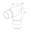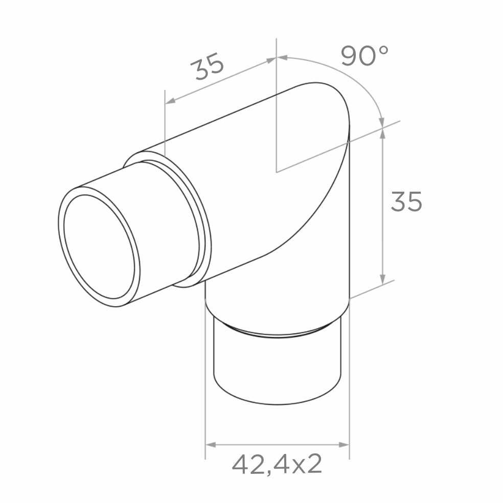 Koleno je určené na spájanie úsekov rúry v systémoch nerezových zábradiel všade tam, kde sa vyžaduje zmena smeru chodu madla o 90° — napríklad na rohoch balkónov, schodísk alebo terás. Ramená s dĺžkou 35 mm na každej strane zabezpečujú dostatočnú plochu lepenia pre trvalé spojenie. Prvok sa vlepuje dovnútra rúry s priemerom ⌀42,4×2 mm, čo zaručuje hladký, plynulý prechod a profesionálny konečný efekt.