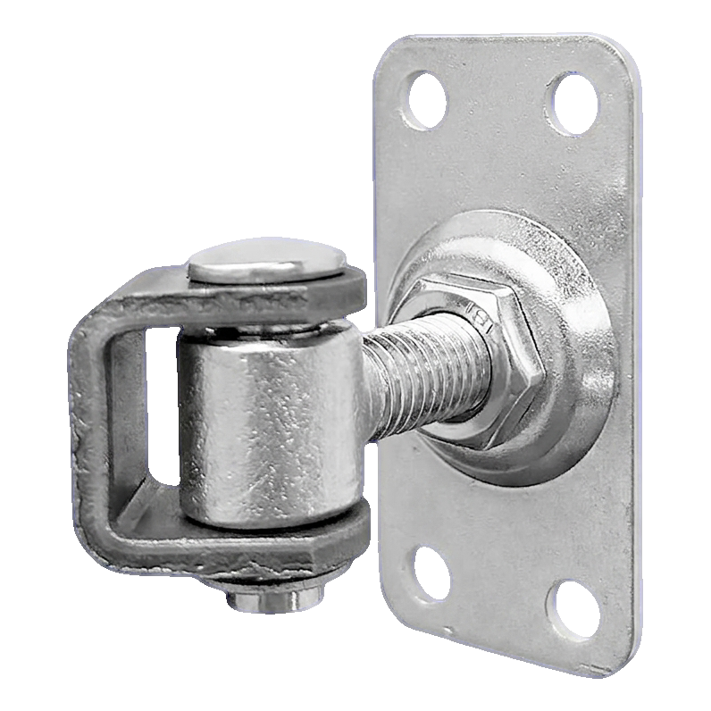 Obdĺžnikový štítok s rozmermi 75 × 37 mm má 4 otvory Ø7 mm rozmiestnené symetricky v rozstupe 21 × 59 mm, čo umožňuje spoľahlivé priskrutkovanie k oceľovému alebo muranému stĺpiku. Hrúbka štítka 2,5 mm zabezpečuje tuhosť pri súčasnom zachovaní nízkeho profilu. Závitový driek M12 s regulačnou maticou umožňuje presné nastavenie vysunutia pántku, čo je obzvlášť dôležité pri montáži brán na nerovnom podklade alebo pri korekcii geometrie po osadení stĺpikov.
