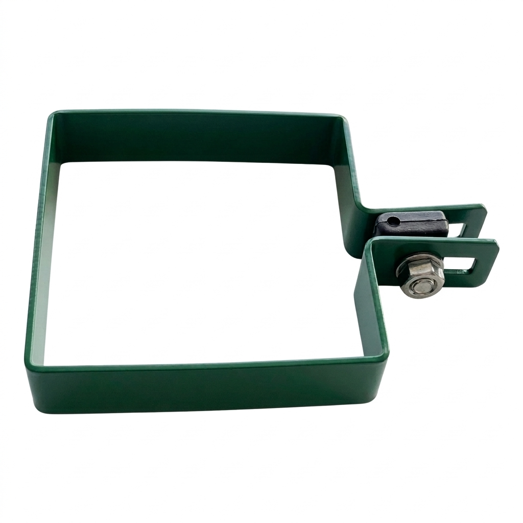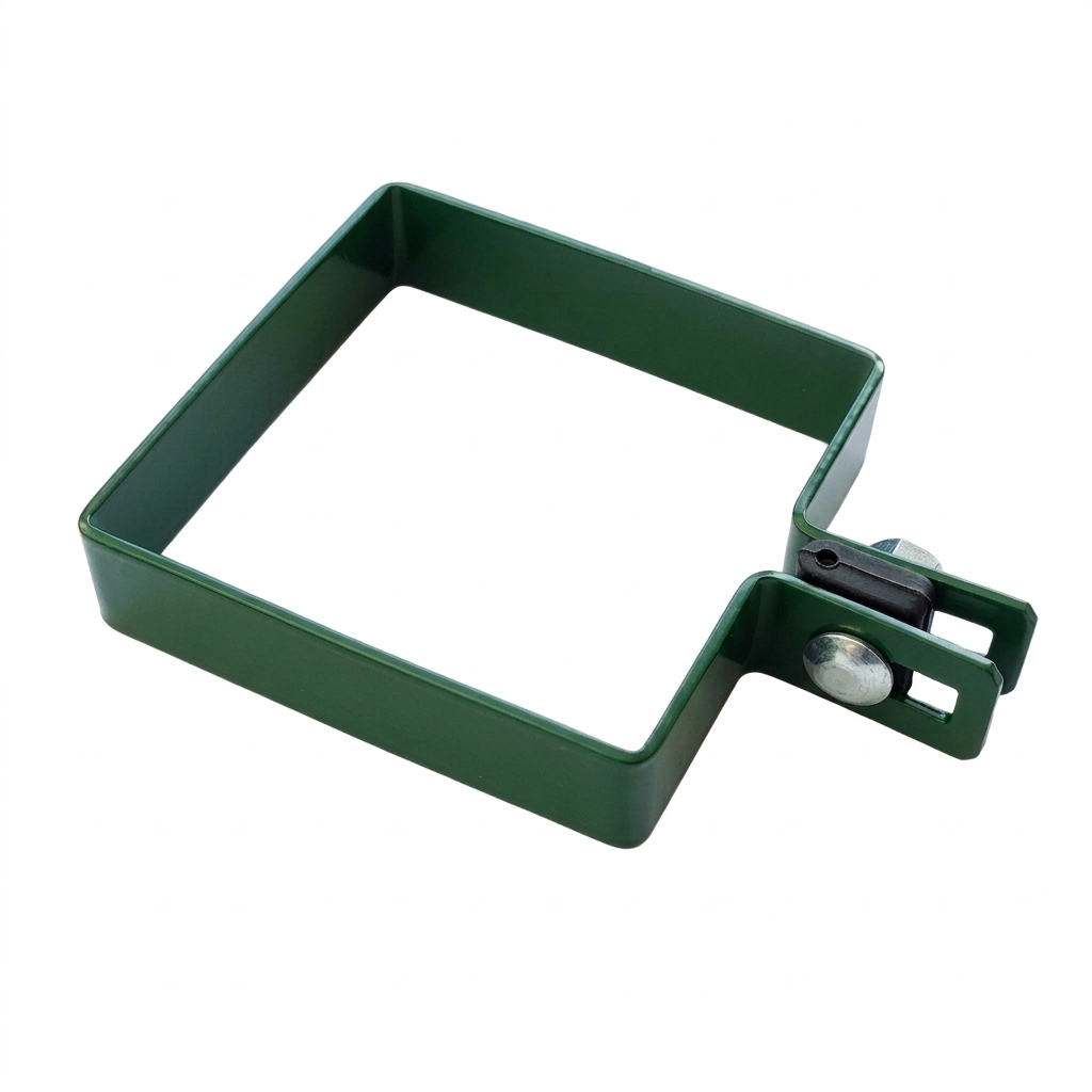 Objímka je vyrobená z oceľového plechu s hrúbkou 2 mm pokrytého práškovým náterom v zelenej farbe RAL 6005, čo zabezpečuje vysokú odolnosť proti korózii, estetický vzhľad a dlhoročnú trvanlivosť v premenlivých poveternostných podmienkach. Farba RAL 6005 sa ideálne hodí k najpopulárnejším systémom panelových plotov dostupných na trhu. Solidná konštrukcia zaručuje stabilné udržanie panelu oplotenia na stĺpiku, eliminujúc riziko uvoľnenia upevnenia pod vplyvom vetra alebo vibrácií.