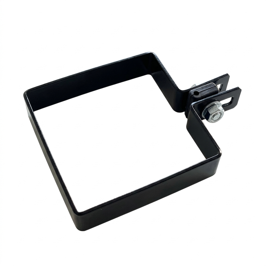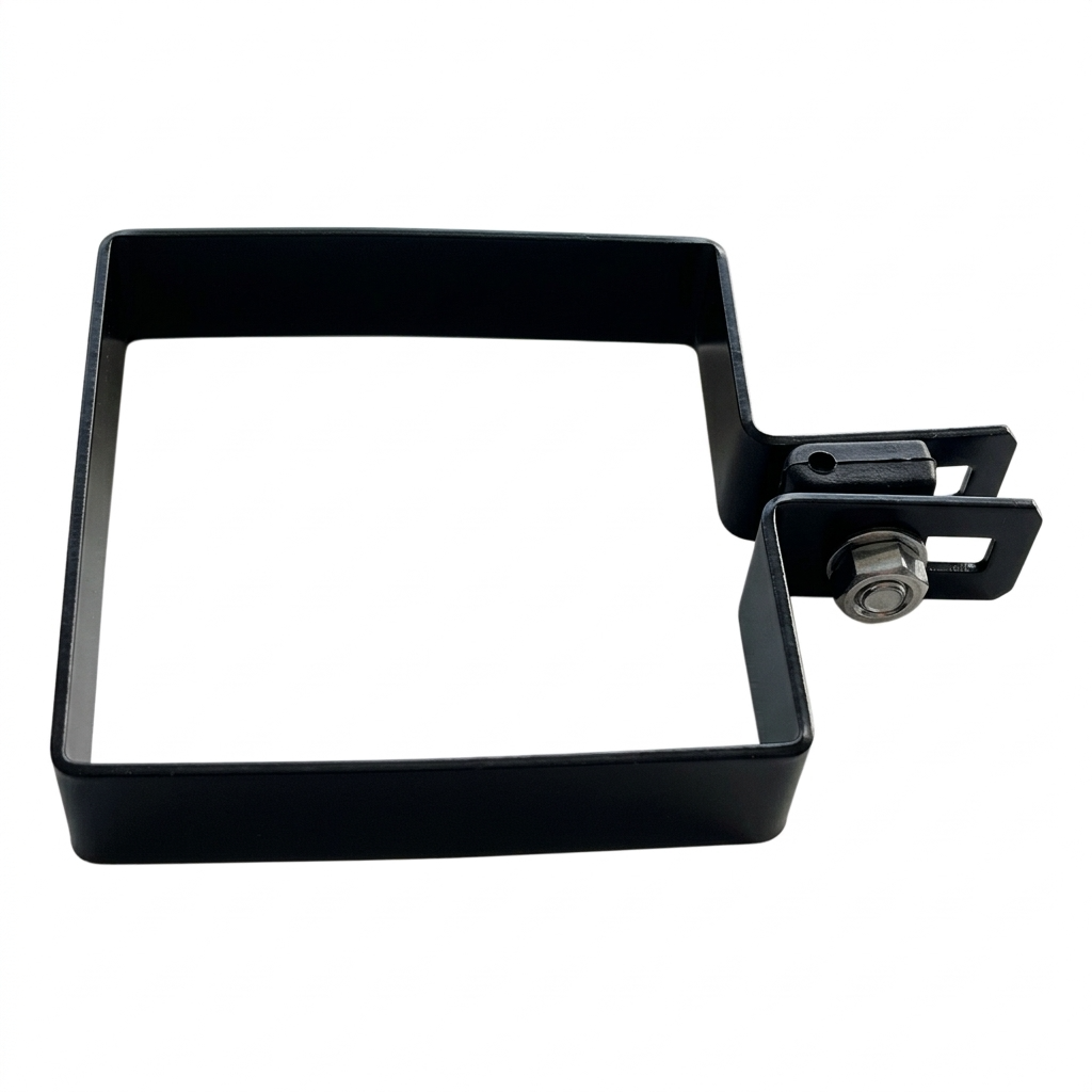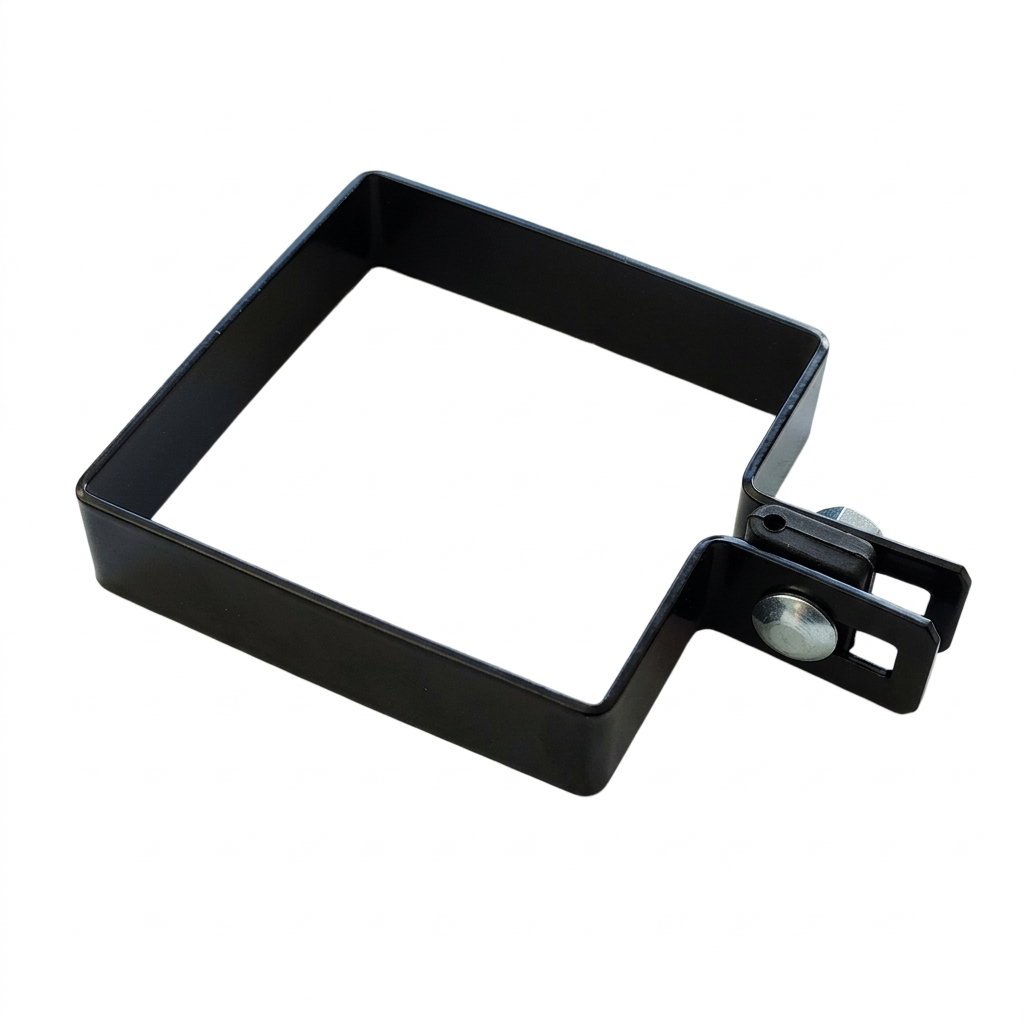 Objímka je vyrobená z oceľového plechu hrúbky 2 mm s práškovou lakovanou povrchovou úpravou v farbe RAL 9005 (čierna), čo zabezpečuje vysokú odolnosť proti korózii, estetický vzhľad a viacročnú trvanlivosť v meniacich sa atmosférických podmienkach. Pevná konštrukcia zaručuje stabilné udržanie plotového panela na stĺpiku, eliminuje riziko uvoľnenia uchytenia pod vplyvom vetra či vibrácií.
