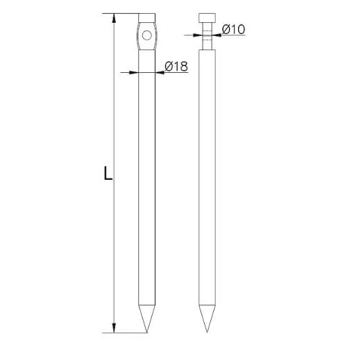Kotva je určená na zabíjanie do zeme a slúži ako upevňovací bod pre okrúhle vodiče s priemerom Ø8 mm. Zašpicatený koniec uľahčuje zabíjanie aj do tvrdších podkladov a montážny otvor umožňuje spoľahlivé upevnenie hromozvodu.