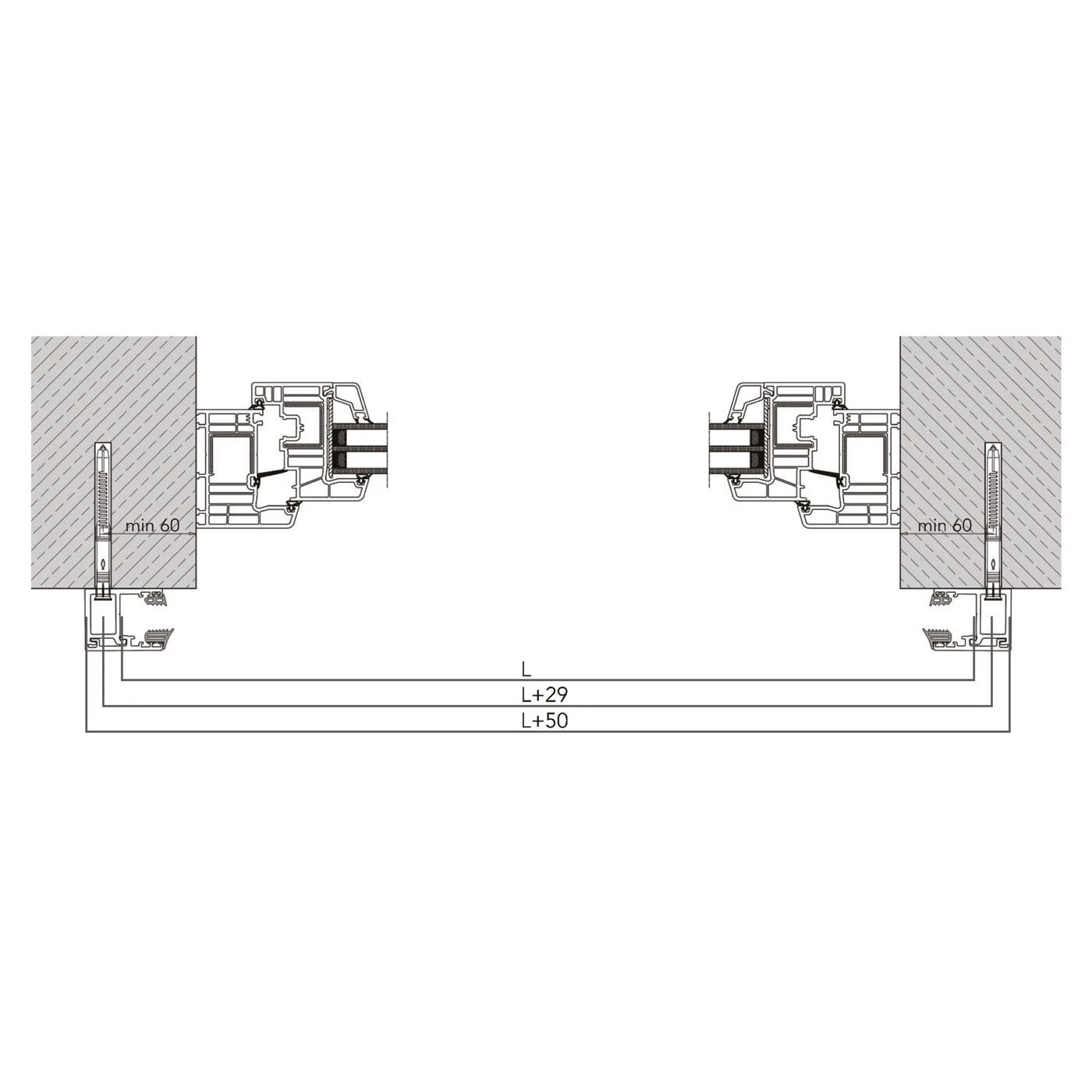 - Montážna šírka skla: L + 29 mm
