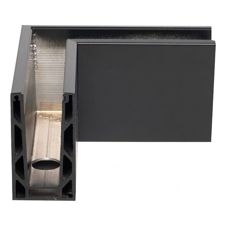 Kozza KE 100 – profil U rohový vnútorný 90° pre celosklené zábradlia, tmavošedý