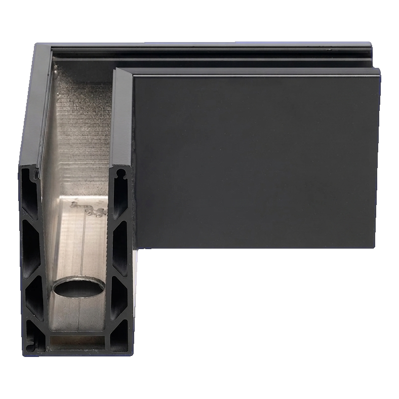 Rohový profil KE 100 je určený pre celosklenené zábradlia v obytných a komerčných budovách — na balkónoch, terasách, schodiskových priestoroch aj mezonínoch. Rovnaké ramená uľahčujú symetrické rozloženie kotiev po oboch stranách rohu, a montáž zhora skracuje čas práce a eliminuje nutnosť zásahu do podlahy. Prepracovaná geometria profilu zabezpečuje tuhú konštrukciu a estetické spojenie tabúľ skla, čo sa prejavuje v profesionálnom konečnom efekte a spokojnosti investora.
