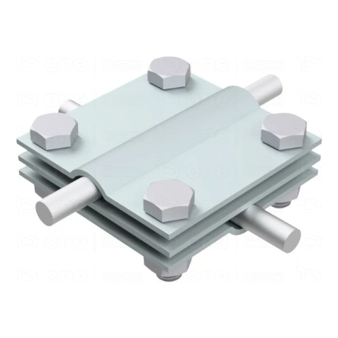 Krížová spojka 4-otvorová 3-platničková slúži na vykonávanie trvalých krížových spojení okrúhlych a plochých vodičov v bleskozvodoých inštaláciách. Je to spoľahlivý prvok systému ochrany pred bleskom, ktorý sa osvedčí tak na strechách, ako aj v pozemných inštaláciách.