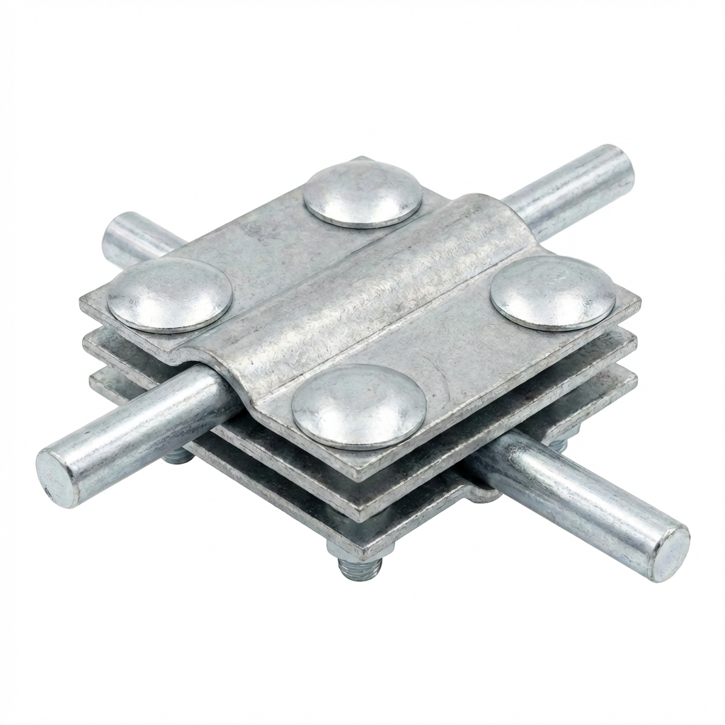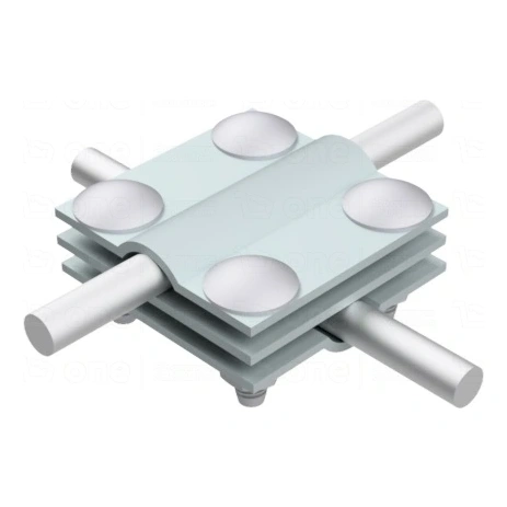 Krížová spojka 4-otvorová 3-platničková slúži na vykonávanie trvalých krížových spojení okrúhlych a plochých vodičov v hromozvodných inštaláciách. Je to spoľahlivý prvok systému ochrany pred bleskom, ktorý sa osvedčí tak na strechách, ako aj v pozemných inštaláciách. Konštrukcia s 3 platničkami zabezpečuje zvýšenú stabilitu a istotu spojenia.