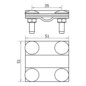 Rozmery spojky sú 51 × 51 × 35 mm, čo zabezpečuje kompaktnú konštrukciu pri súčasnej plnej funkčnosti. Označenie B v názve produktu sa vzťahuje na maximálnu šírku pásoviny, ktorú možno upevniť v spojke.