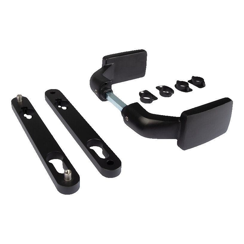 Ergonomická rukoväť bola špeciálne navrhnutá tak, aby zabránila odieraniu dlane o opornú dosku na stĺpiku — to je dôležitá výhoda pri intenzívnom využívaní na komerčných a priemyselných objektoch. V súprave sa nachádzajú dva montážne štítky, pár kľučiek, spojovací čap a upevňovacie skrutky s motýľovými maticami, čo zabezpečuje rýchlu a bezproblémovú montáž.