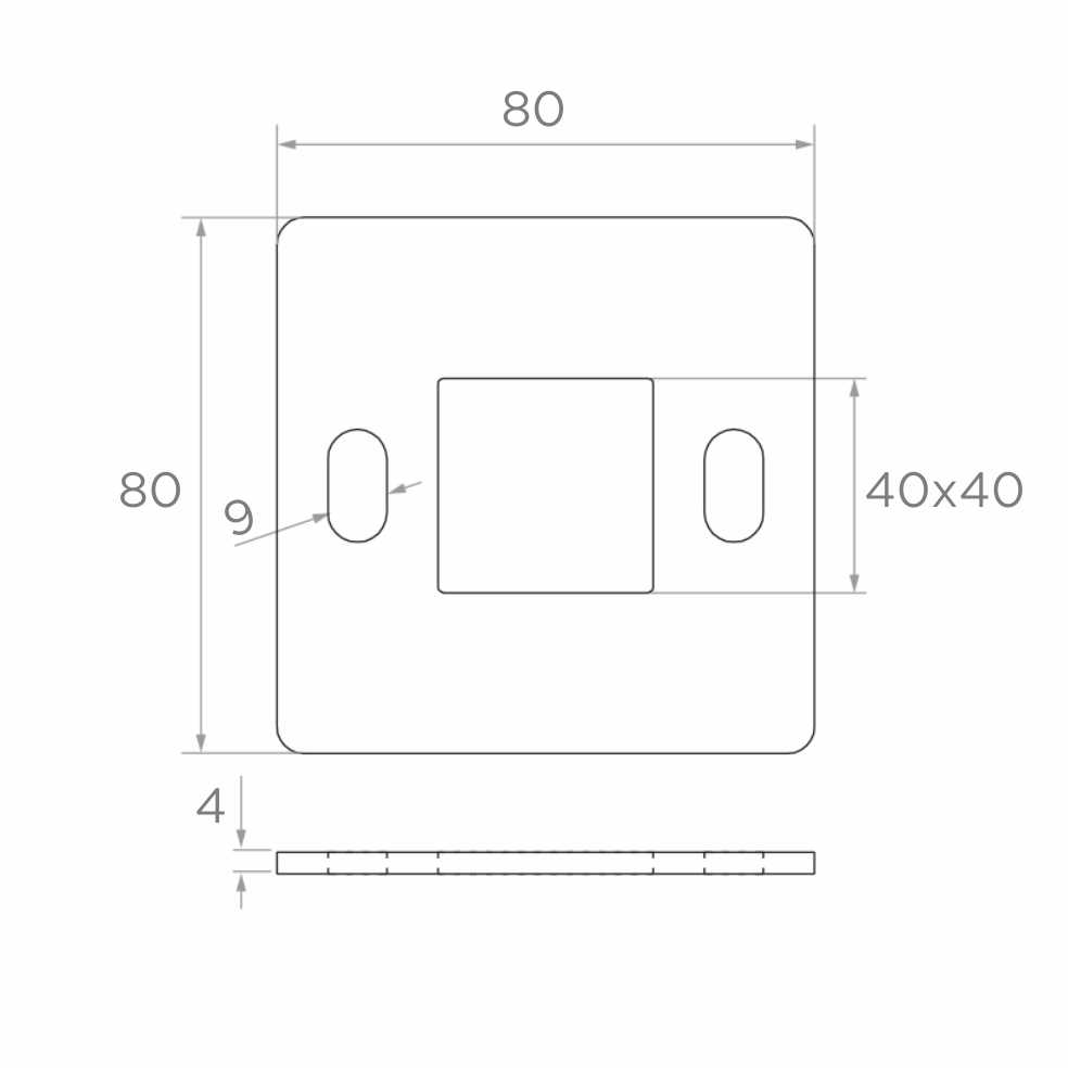 Kompaktné rozmery a malá hrúbka len 4 mm spôsobujú, že doska sa výborne hodí ako základný prvok v systémoch zábradlí z nehrdzavejúcej ocele. Oválne otvory (fazuľky) so šírkou 9 mm umožňujú reguláciu polohy uchytenia, čo je obzvlášť užitočné pri montáži na nerovných podkladoch alebo v prípade potreby prispôsobenia rozteče skrutiek. Centrálny štvorcový otvor 40×40 mm umožňuje istú inštaláciu profilu stĺpika zábradlia.