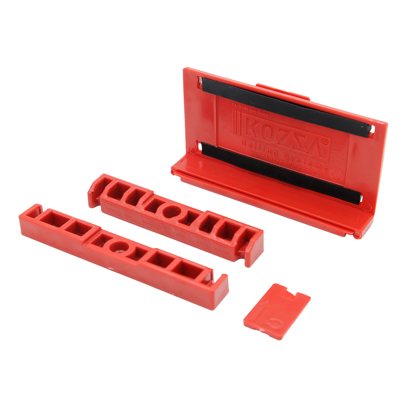 Montážna sada Glassmove je kompletné riešenie na profesionálne osadzanie sklenených tabúľ do hliníkových profilov série KF typu U, L a Y. Je určená na montáž skiel s hrúbkou od 12 do 13,52 mm do profilov s dĺžkou až 5000 mm a výborne sa osvedčuje pri realizácii zábradlí, sklenených priečok a deliacich stien. Sada umožňuje bočné uchytenie aj uchytenie zhora, čím inštalatérom poskytuje plnú slobodu pri aranžovaní.