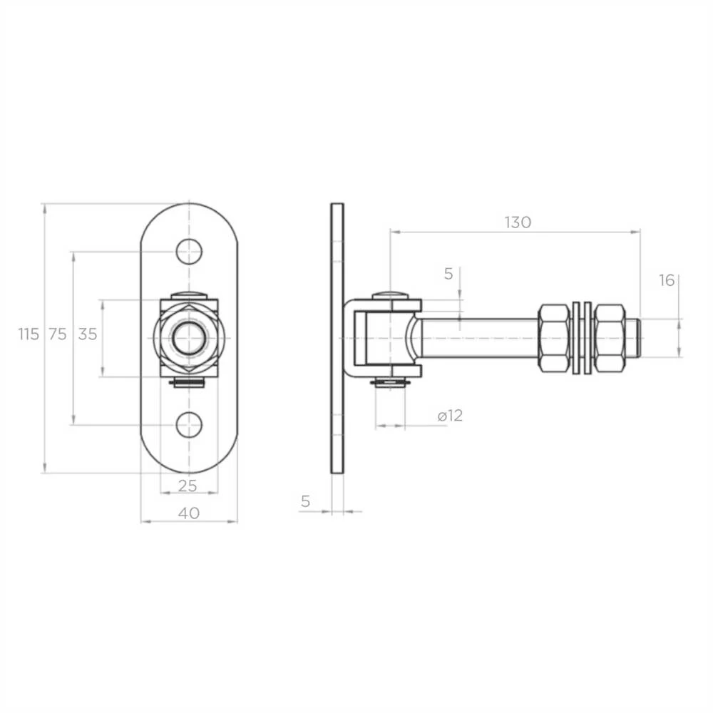Nastaviteľný záves M16 so štítkom je odolný kovaním určený na montáž krídlových brán a braniek. Vďaka závitovému čapu M16 umožňuje presné nastavenie polohy krídla kedykoľvek po dokončení inštalácie — ako pri previsnutí konštrukcie, tak pri zmenách rozmerov spôsobených extrémnymi teplotami.
