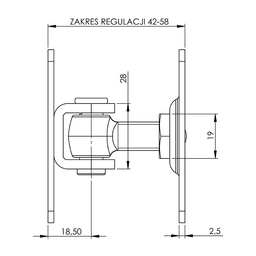 - Nastavenie po montáži — rozsah 42–58 mm umožňuje korekciu nastavenia krídla bez demontáže