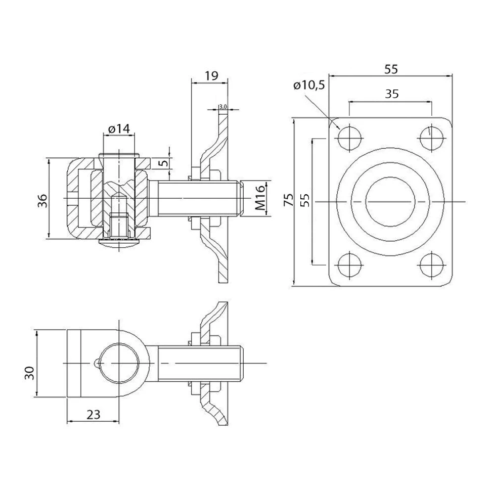 Nastaviteľný záves M16 s obdĺžnikovou doskou 75×55 mm