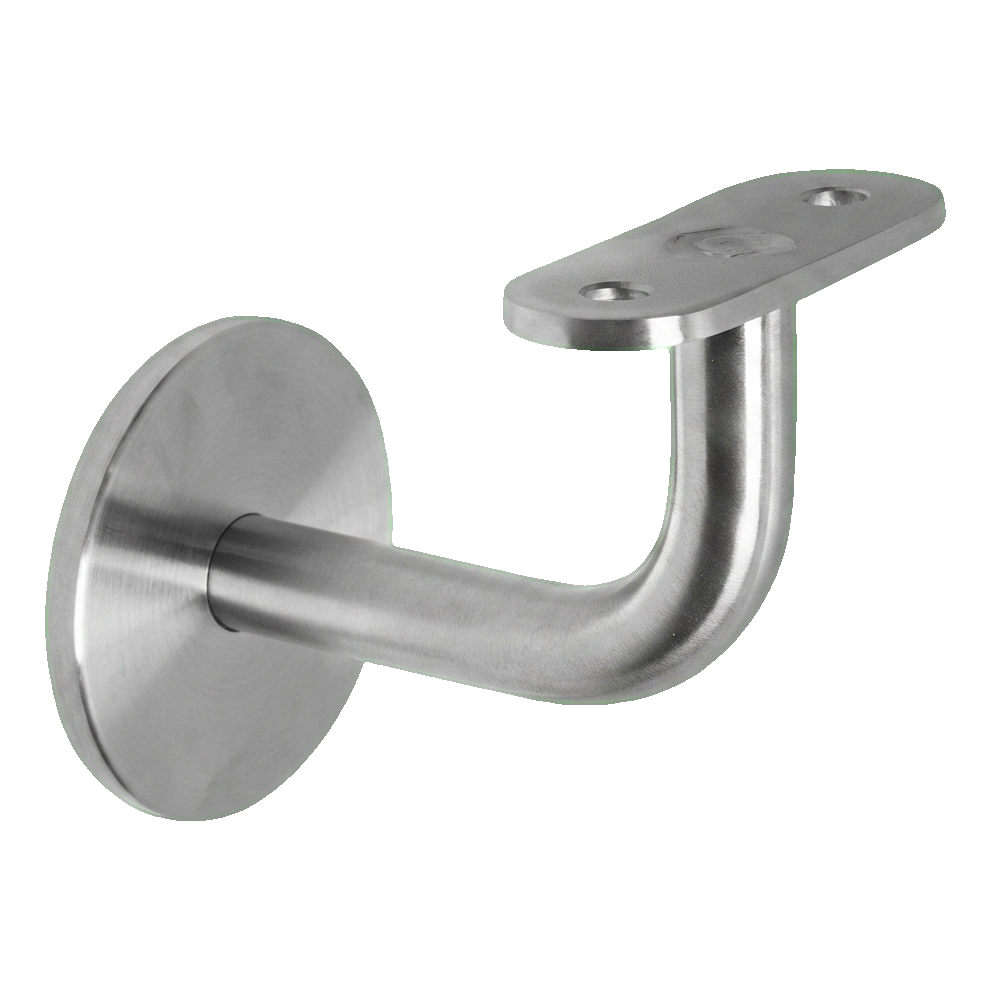 Držiak sa skladá z okrúhlej nástennej rozety, ohnutého nosného prúta s priemerom Ø14 mm a plochej montážnej doštičky s otvormi, uľahčujúcej priskrutkovanie madla. Montážna doštička je súčasťou súpravy. Montáž na stenu sa realizuje pomocou skrutky M8 (skrutka nie je súčasťou súpravy).