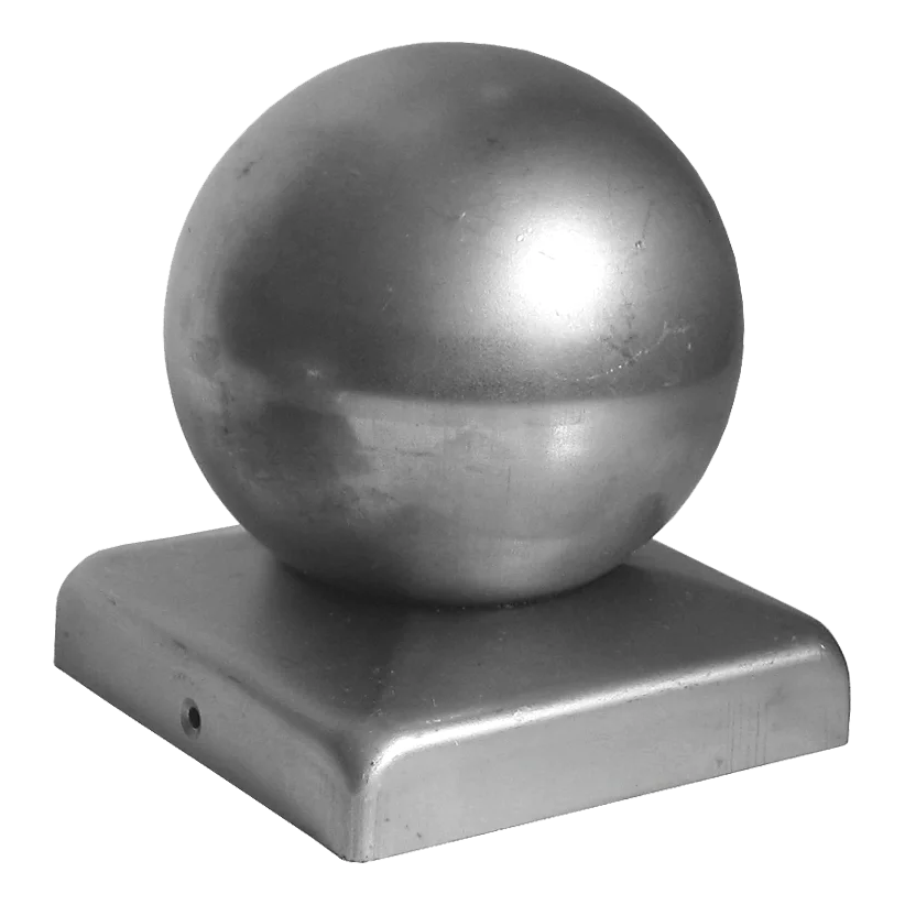 Oceľová oplotová strieška s ozdobnou guľou je estetické a funkčné zakončenie oplotových stĺpikov s prierezom 60×60 mm. Guľa s priemerom fi 60 mm dodáva oploteniu elegantný, reprezentačný vzhľad a zároveň účinne chráni hornú časť stĺpika pred vniknutím dažďovej vody a deštruktívnym pôsobením atmosférických podmienok.