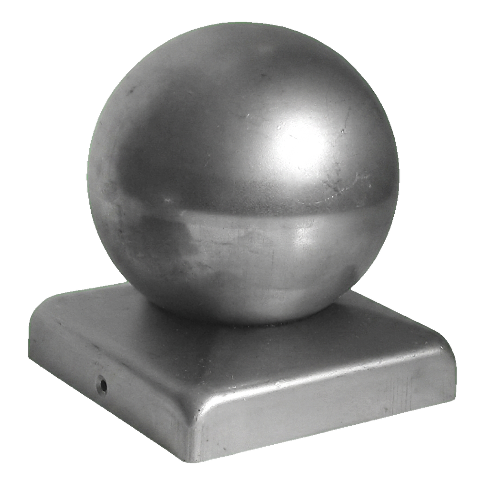 Oplotový prístreška oceľový 100×100 mm s ozdobnou guľou fi 80 – pozinkovaný