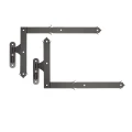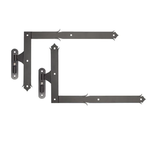 Komplet ozdobných kútových záves s čapom určených na montáž veľkých dverí, brán a bránok — osobitne v hospodárskych budovách a objektoch s tradičným charakterom. Súprava obsahuje dva závesy (horný a dolný) na jedno krídlo, čo umožňuje kompletné vybavenie montážneho otvoru v rámci jednej objednávky.